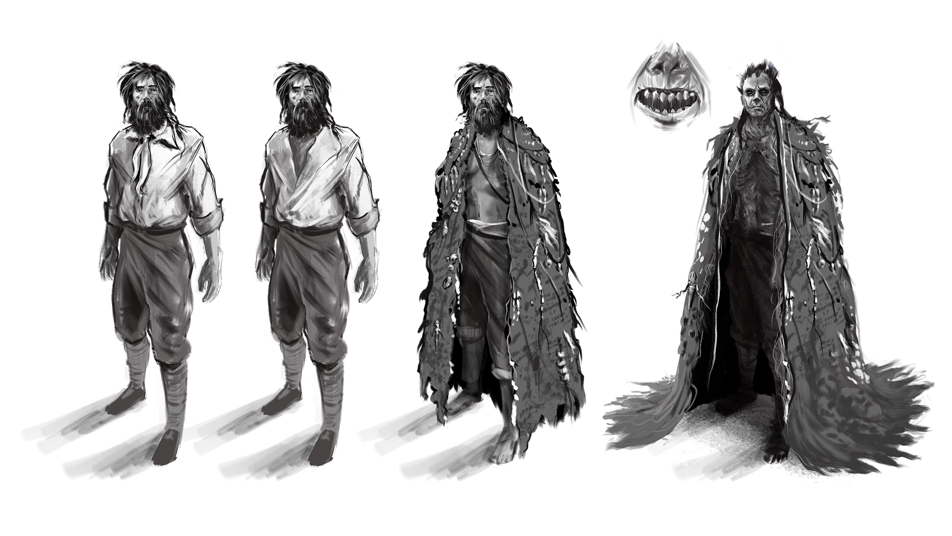 Abaixo temos um concept art de personagem que desenvolvi com acompanhamento do diretor, em que a premissa é demonstrar o desenvolvimento e transformação do personagem ao longo da série.